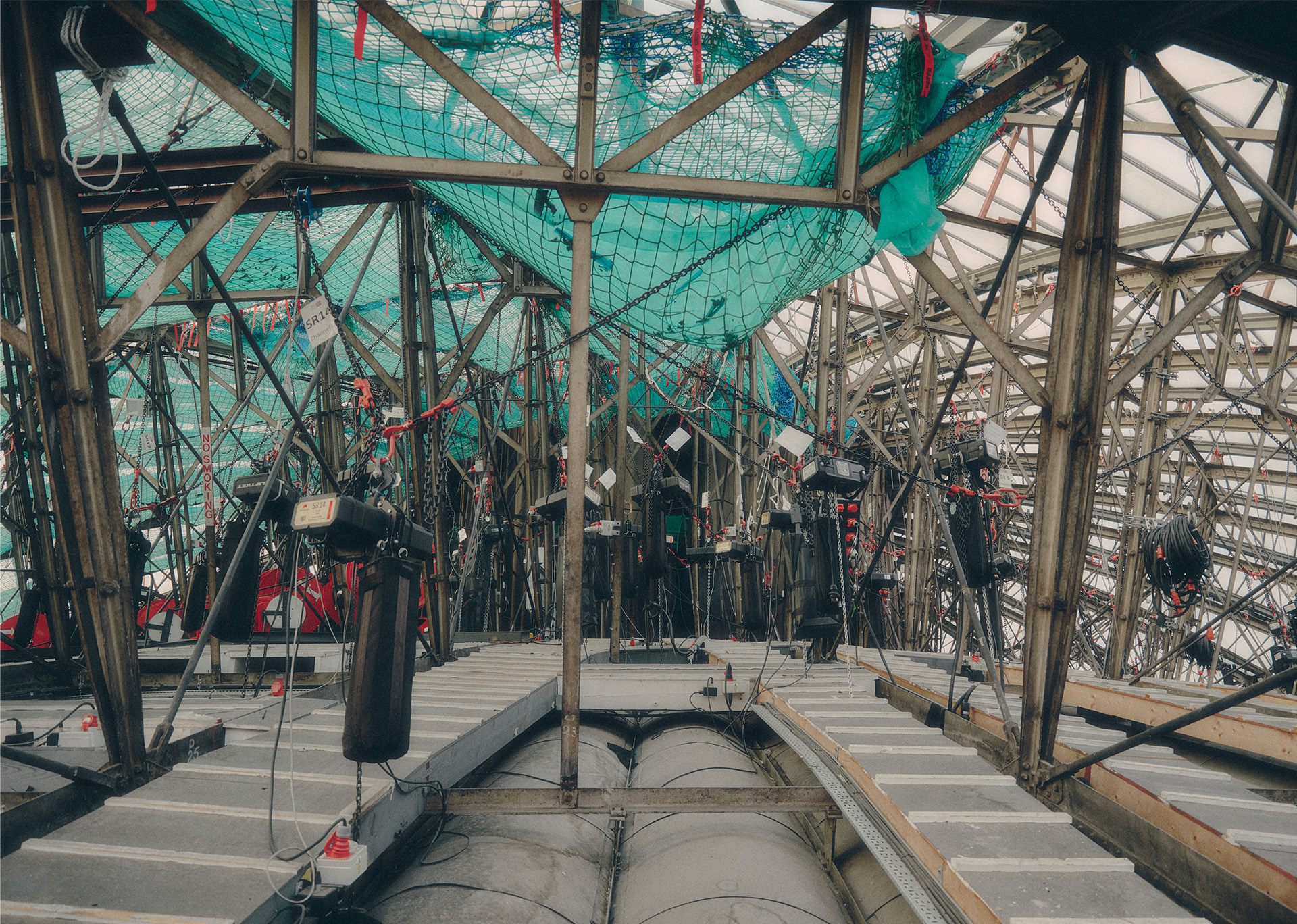Inside the roof of the Royal Albert Hall