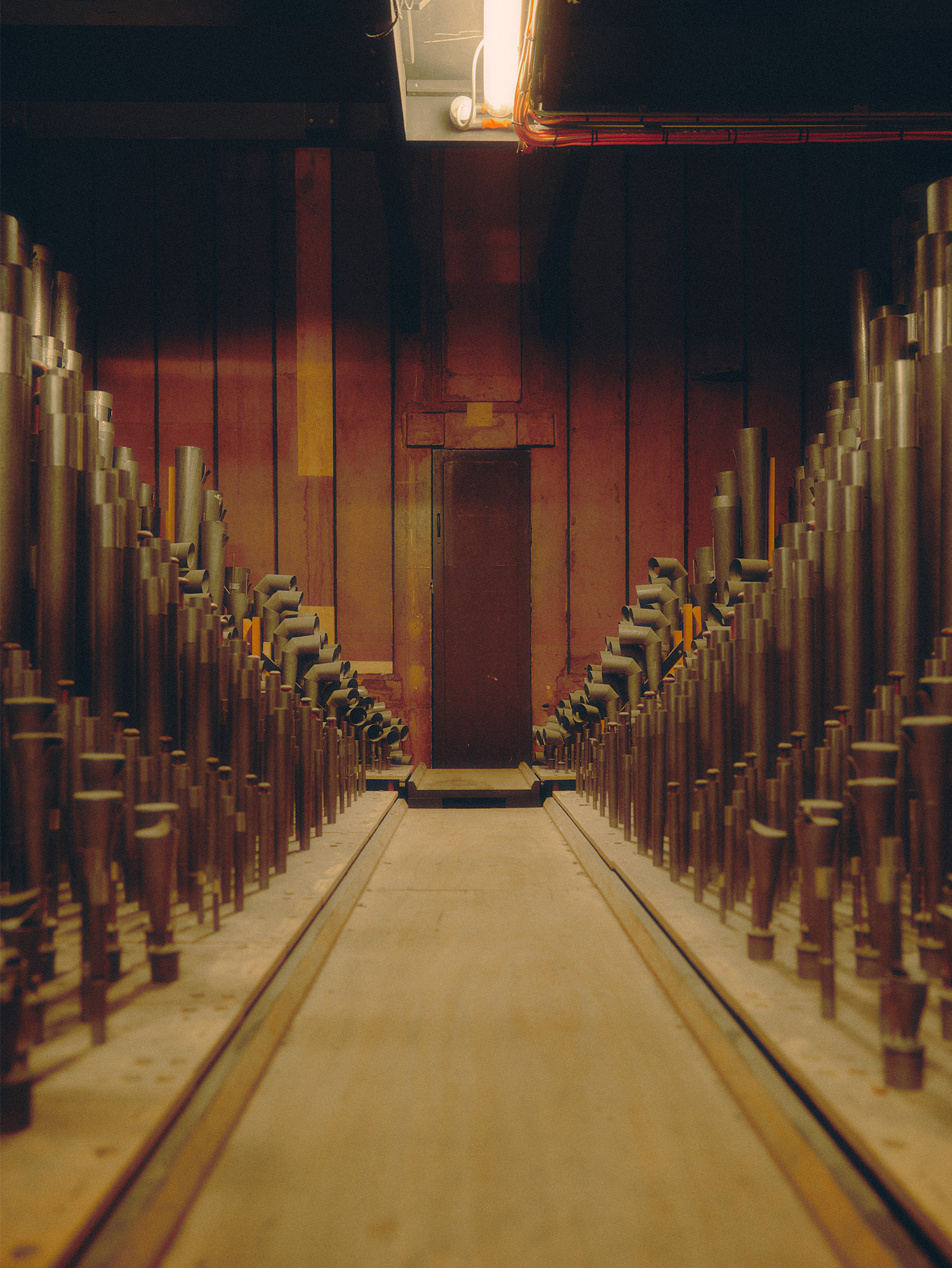 Inside the hall's organ that contains 9,999 pipes