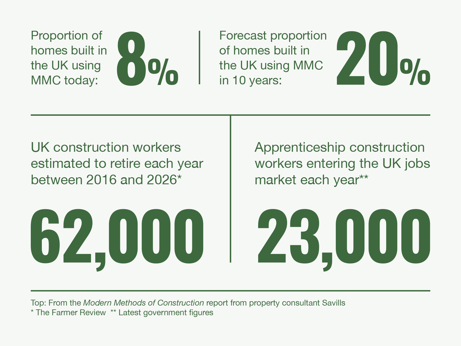 In the UK, labour availability was already an issue before the 2016 Brexit referendum. Since the UK voted to leave the EU, it has become ever more pressing. Modernise or die: the Farmer Review of the UK construction labour model, published around four months after the vote, said that between 2016 and 2026 around 62,000 construction workers would retire each year. Contrast that with the latest government figures on apprenticeships, which show that only around 23,000 new apprentices are coming on stream annually.