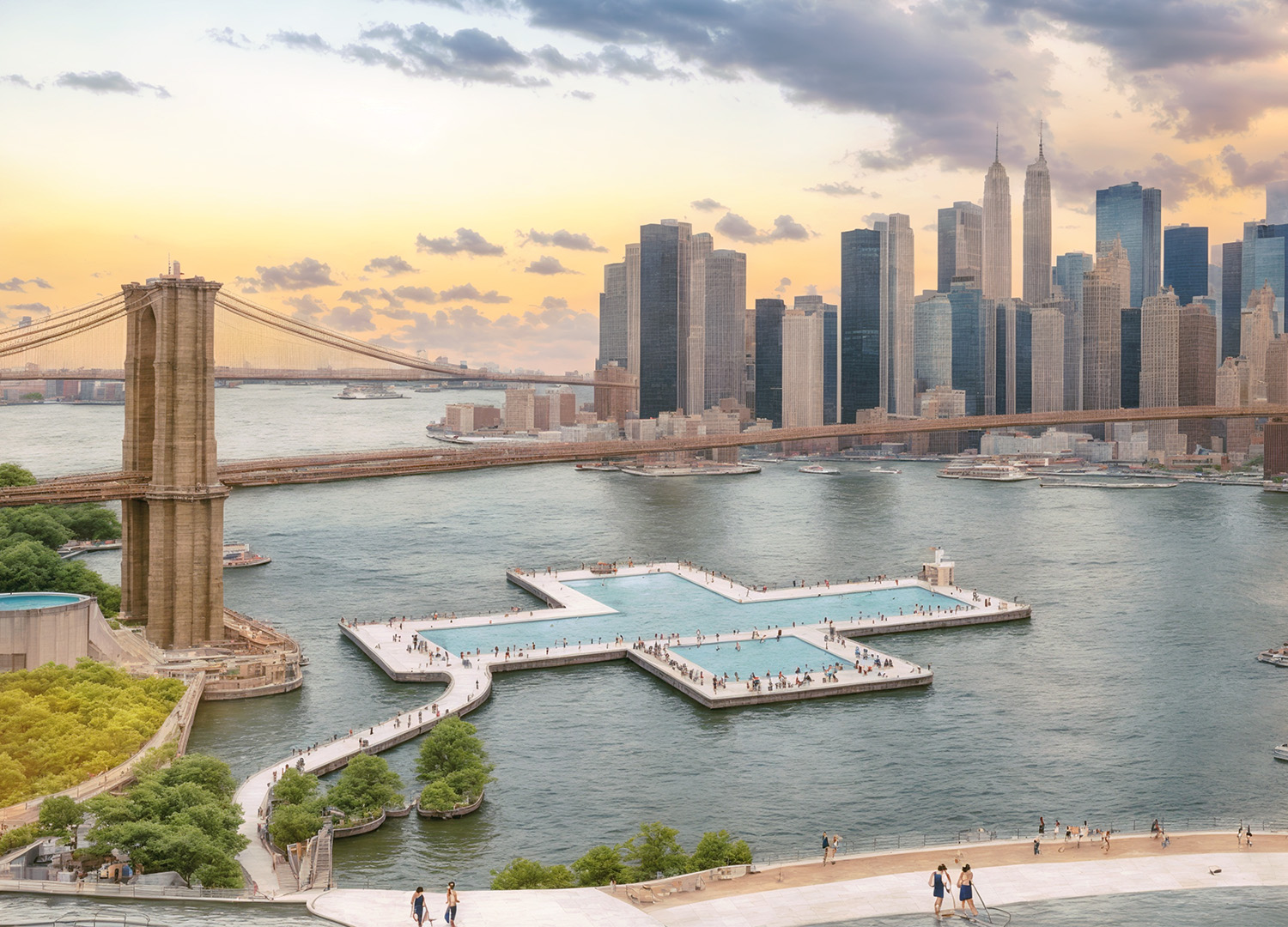 A team of designers has invented the Plus Pool, which will float in New York City’s East River and filter the surrounding water for use in the pool. Designed in a plus-shape, each ‘arm’ of the pool will be for a different activity: laps, sports, lounging and kids.