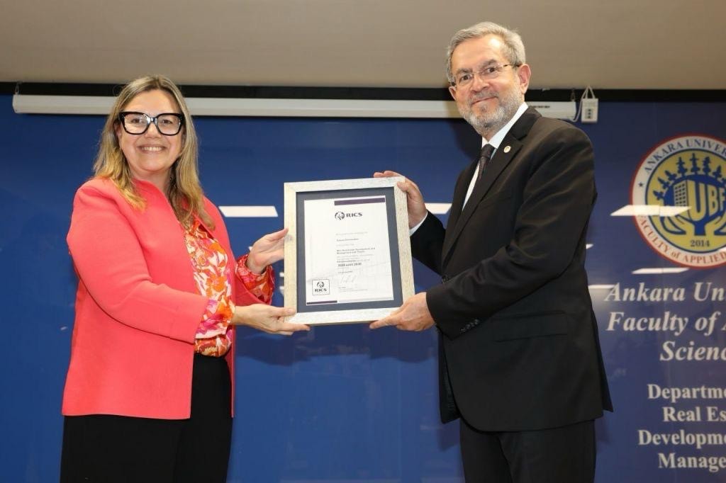 A ceremony was organised by Prof. Dr. Harun Tanrıvermiş MRICS in recognition of the continued excellence of its real estate programmes and its achievement as the university with the highest number of RICS-accredited programmes in continental Europe. This milestone reflects a long-standing collaboration between RICS and the university, dating back to 2007, and highlights the Institution’s strong commitment to aligning its education with international standards. The Department stands out for its strong international alignment, having been accredited by RICS since 2014, and for its multidisciplinary, industry-focused approach combining valuation, investment, planning, law, and project management. With close links to both the public and private sectors, the department plays a key role in shaping professional standards, supporting employability, and contributing to the development and internationalisation of the real estate sector in Türkiye.